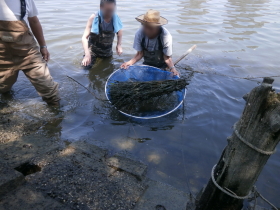 | アジの一本釣り漁の様子 | ホンビノス漁の様子 |