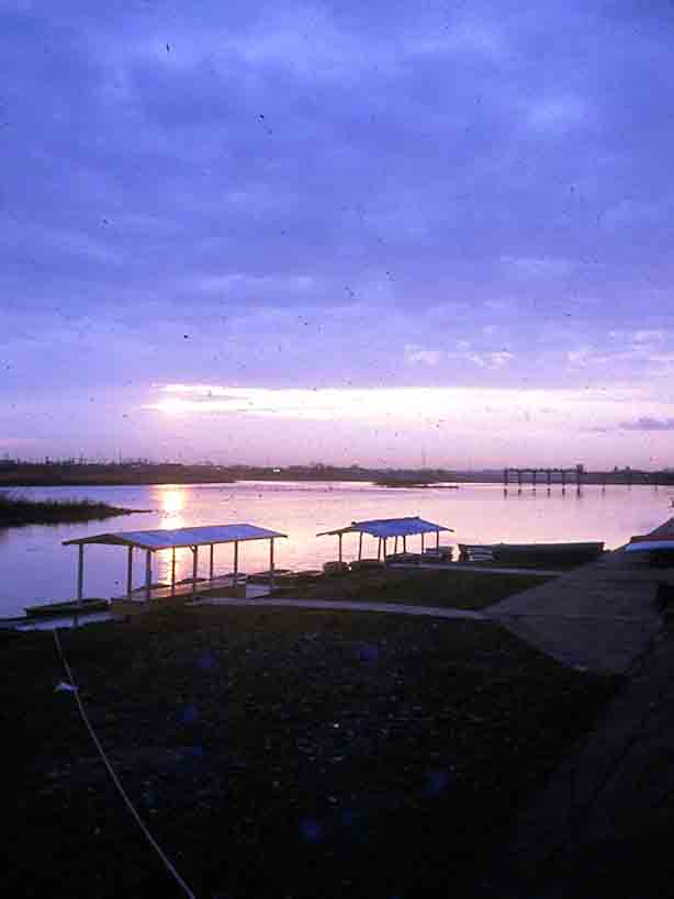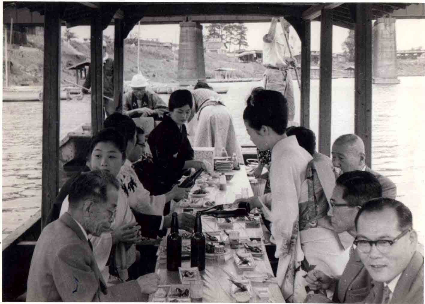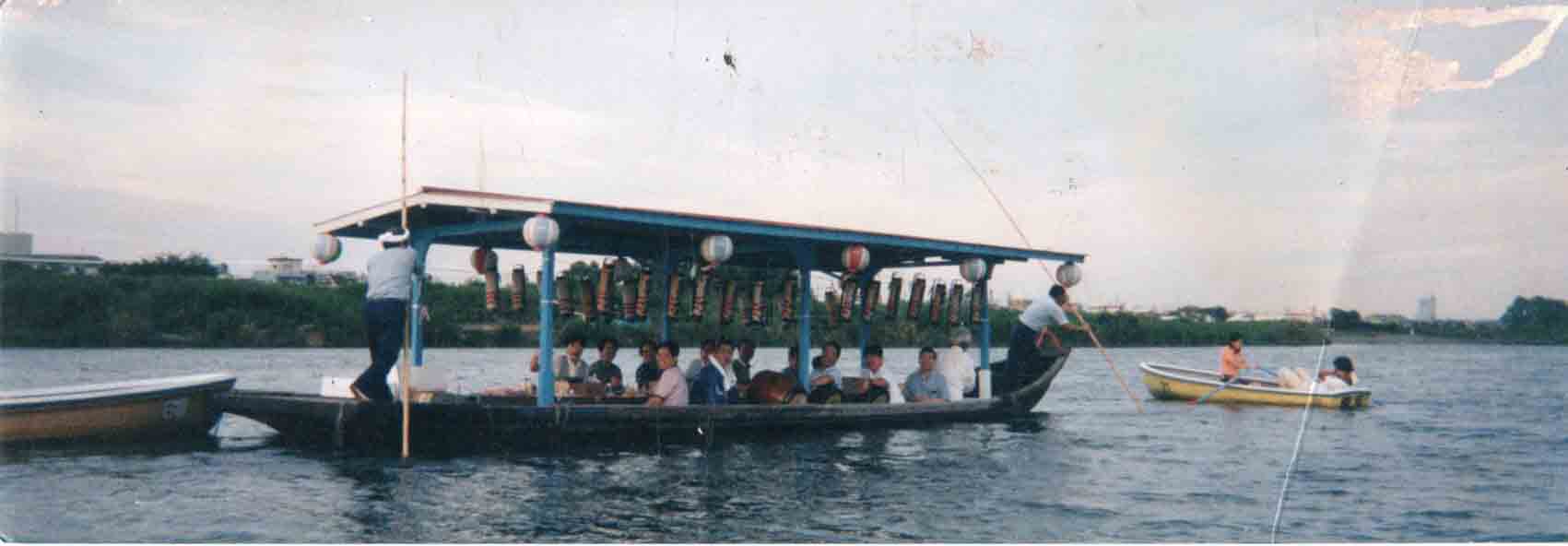 朝日の中に屋形船 手塚氏より
