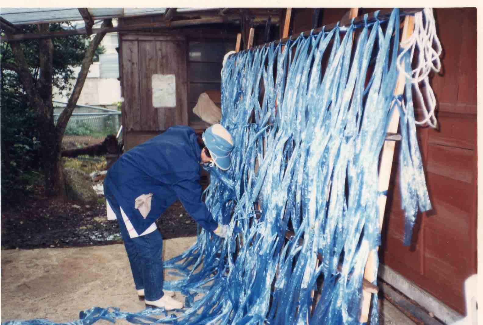 作った鯉の産卵床を設置します 手塚氏より
