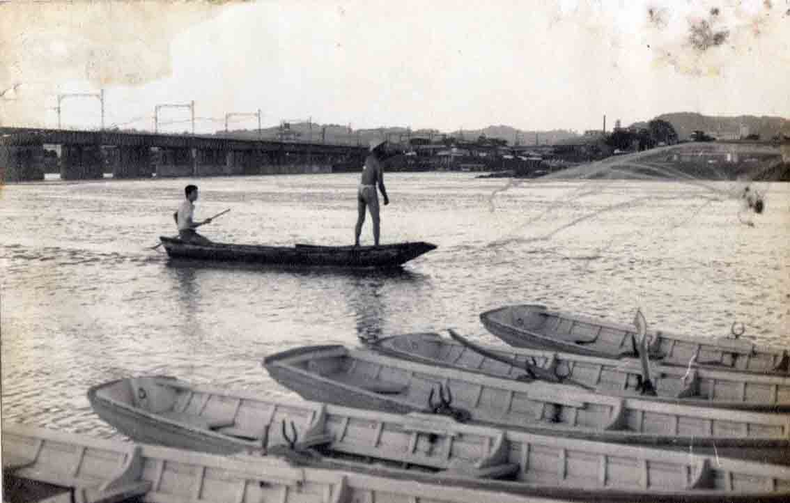 映っている鉄橋は小田急戦です 多摩川漁協谷田部氏